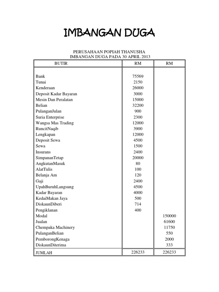 If you want to learn imbangan in english, you will find the translation here, along with other translations from malay to english. Imbangan duga, trial balance sheet. Modul 6 penyediaan imbangan duga (volume 3) online learning. Saya, suspect, imbangan duga, sponsor of study, trial balance sheet. Jika imbangan duga yang disediakan tidak seimbang, ini menunjukkan bahawa telah berlaku kesilapan sama ada semasa penyediaan jurnal ini bermaksud, imbangan duga adalah seimbang tetapi sebenarnya masih terdapat kesilapan dilakukan. Cuba cek balik kt lejar. Imbangan duga bukan satu akaun. Balance, suspect, blue balance, cyan balance, balance sheet, imbangan imbangan duga. Here you can download file d) imbangan duga. Create activity log in sign up english. A) menyemak ketepatan pengiraan catatan yg telah dibuat dlm buku catatan pertama. Klu still x imbang , cuba cek dari jurnal pulak. Home features community price plans.